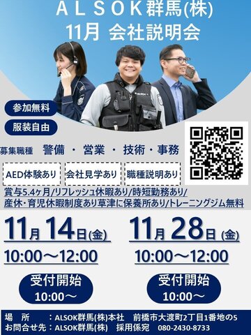 参加希望者は本サイト応募フォームにて「11月○○日の会社説明会希望。」とご記載下さい。