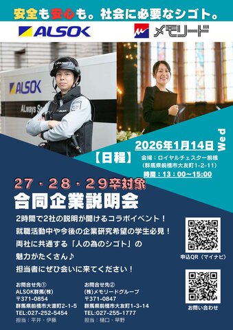 【2027年新卒採用】ALSOK群馬×メモリード 合同オープン・カンパニーを開催いたします